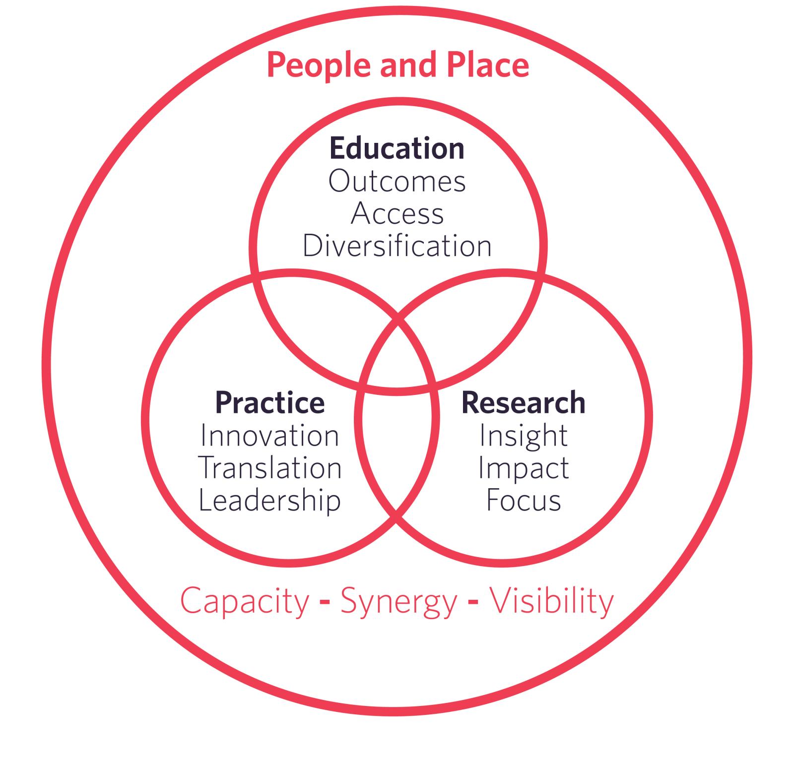 Our priorities: People and Place; Education; Research and Practice.