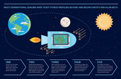 In order for astronauts to successfully explore space, they need to be protected from cosmic radiation. On traveling to Mars, every cell nucleus in an astronaut’s body (>1012 events) would be hit by a proton or secondary electron (e.g., electrons of the target atoms ionized by HZE ions) every few days and by an HZE ion itself about once a month. Models of the space environment have predicted that astronaut crews may receive a total body dose of approximately 1–2 mSv/day in interplanetary space and approximately 0.5–1 mSv/day on the Martian surface. The aim of this study is to make the yeast cells resistant to such harmful radiation, and the first steps begin with research to understand the fundamental effect on biological processes, such as: